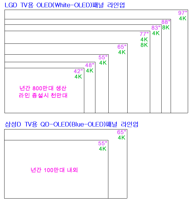 | 사이즈 & 주사율 | *4K : 42"/48"/55"/65"/77"/83"/97" *8K : 77"/88" | *4K : 55"/65" *75"~ 또는 8K는 2023년~(?) |