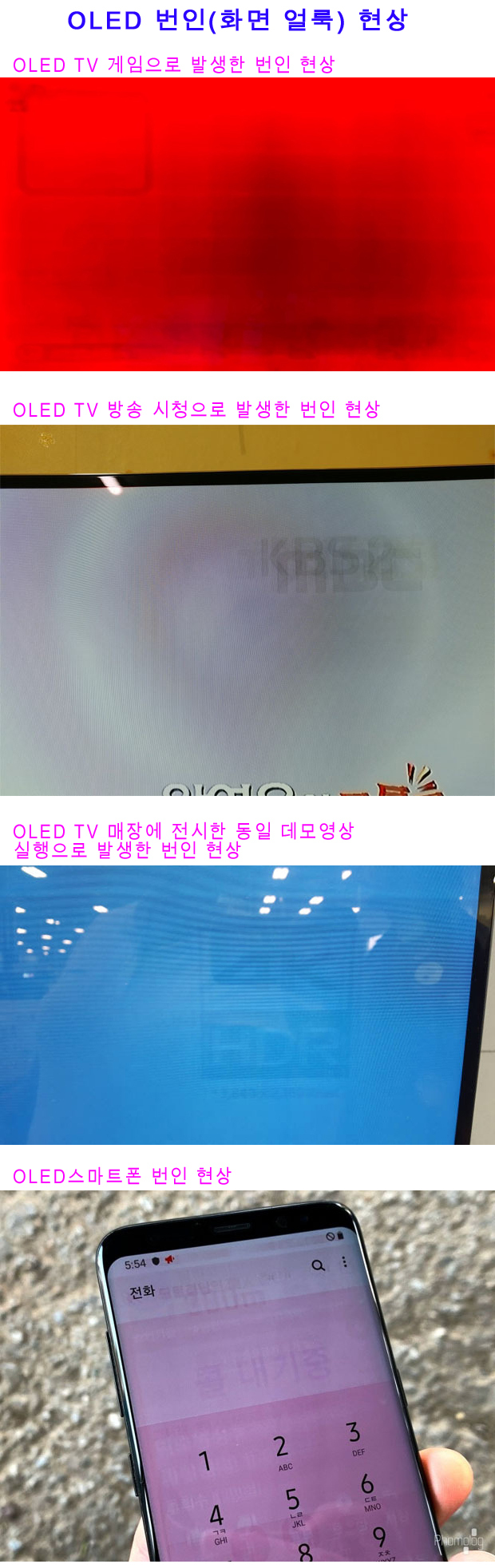 | 1.비싼 가격에 비해 내구성(번인 현상/밝기 저하)이 떨어지기 때문이다. KBS와 같은 방송사 로고가 있는 방송을 지속적으로 시청을 할 경우, 방송사 로고 화면에 얼룩(버닝)이 생긴다. 물론 OLED TV가 이러한 문제를 해소하기 위해, OLED TV는 소프트웨어적으로 화면을 클리어 해주는 기능이 있기는 하지만, 번인 현상을 근본적으로 막지는 못한다. 해서 OLED는 3~4년 정도 사용하는 스마트폰용으리면 몰라도, 10년이상 사용하는 TV용으로는 적합하지 않다. 2.고해상도(4K→8K)로 갈수록 자발광의 장점이 약점이 되어, 미래 지향적이지 못하다. 8K OLED TV는, 4K OLED TV에 비해 발광소자를 4배 더 사용하여, 원가가 4배 이상 올라가고, 소비전력도 4배나 상승한다. 해서 OLED TV는 미래 지향적인 TV가 되지 못한다. 즉, 4K까지가 사실상 한계다. 3.밝기 향상은 소비전력 상승과 밝기(수명)저하로 이어진다. 자발광의 밝기향상은, 소비전력 상승과 밝기(수명)저하를 더욱 빠르게 진행 시켜, 하나를 얻으면(발기향상) 하나를 잃게(밝기(수명) 저하) 된다. |