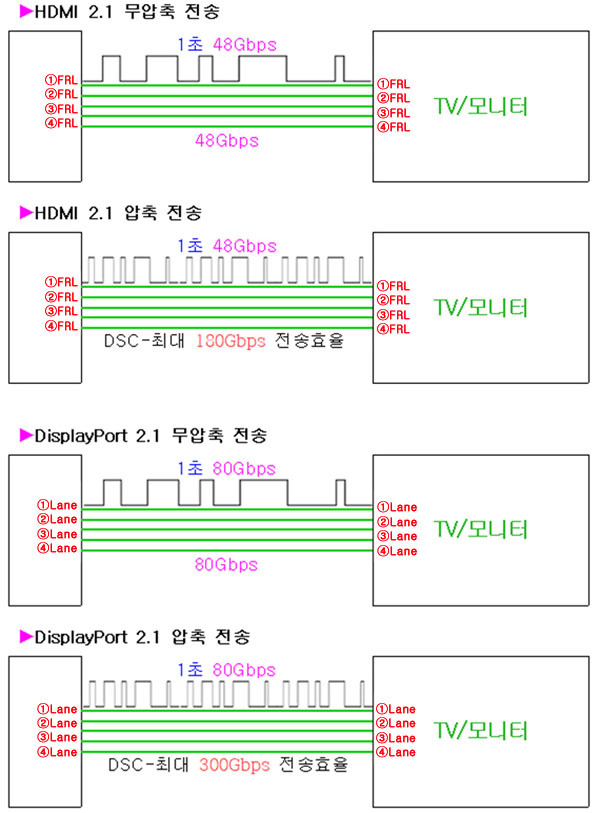 ▶최신 그래픽카드별 HDMI 2.1/DP 2.1 전송량 지원 내역