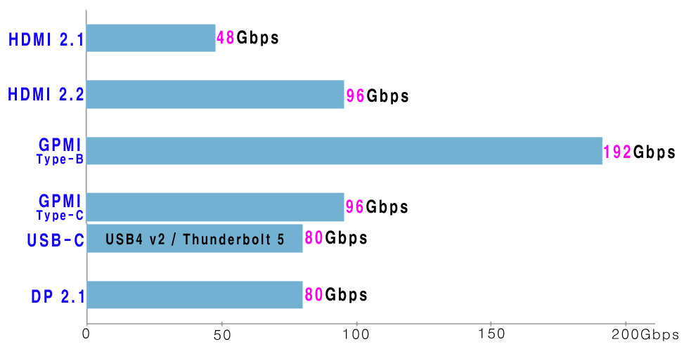 ❶'HDMI 2.2(96Gbps) Vs GPMI Type-B/C(192/96Gbps)’→GPMI 우위