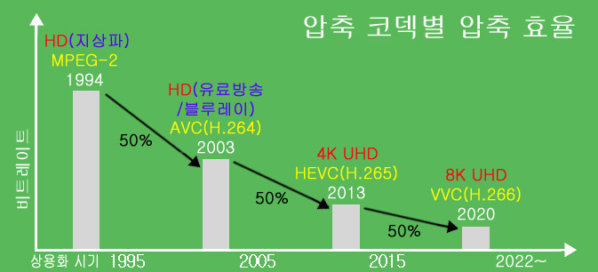 | ※결론은, 압축 코덱은 다르지만 압축효율의 상승을 감안하면 이론적으로는 HD화질은 비슷하다고 보지만, 압축 코덱의 특성과 HDR적용 여부에 따라 화질 차이는 생길 수 있음. | ||
