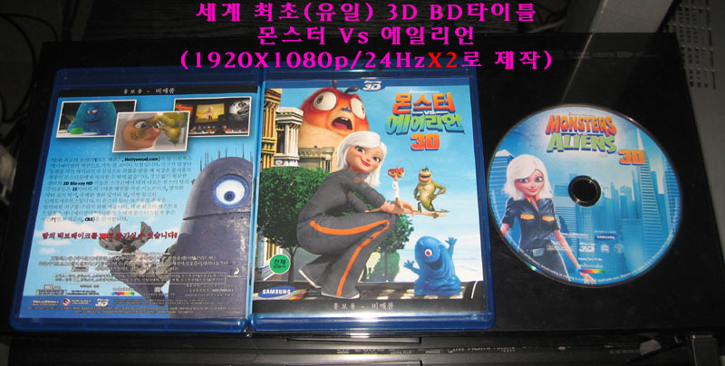 1)1080p 3D영상 : 3D BD타이틀(몬스터 Vs 에일리언)-1920X1080/24HzX2로 제작