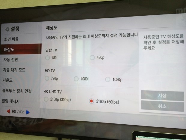 hdmi 2.0 지원이라 일단 저 사진처럼 4k 60fps 로 설정하고 보는 중입니다. uhd 전용채널은 저렇게 보면 되는데