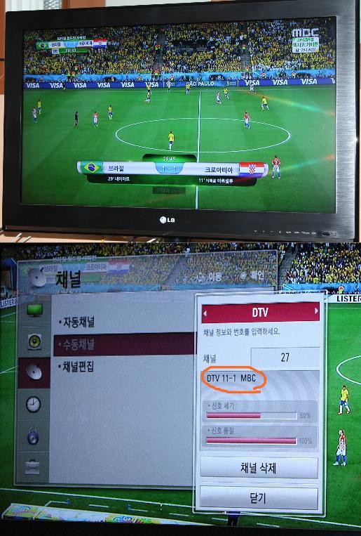 브라질 월드컵 개막전인 브라질과 크로아티아와의 경기가 아주 깨끗하고 선명하게 나오고 있습니다.