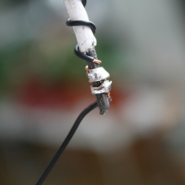사진 오른쪽의 다른 한 쪽 끝이 옷걸이 안테나와 연결될 부분입니다.