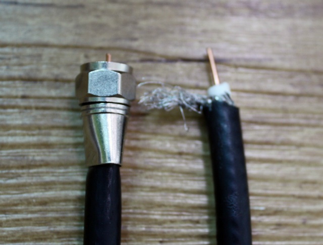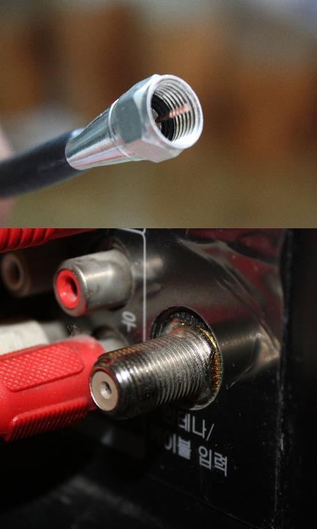 위 사진의 동축케이블 왼쪽은 디지털 TV 단자에 연결한 부분이며,