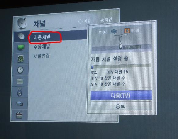 자~ 그럼 이제 지상파 방송이 잘 수신이 되는지 확인해 보는 순서입니다.