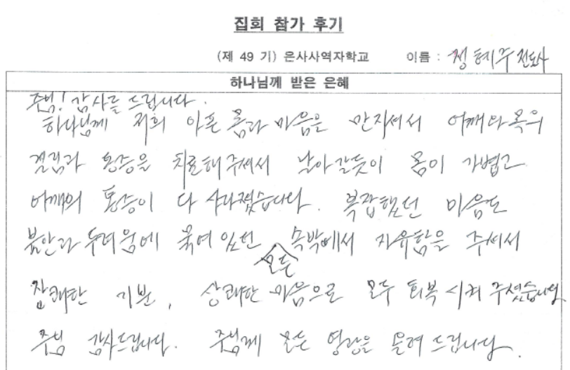 (제49기 은사사역자학교 간증) 치유를 받아 몸과 마음이 상쾌해 졌습니다~ 작성자약속믿고|작성시간23.03.16|조회수184 목록 댓글 0 글자크기 작게가 글자크기 크게가 다음검색 현재 게시글 추가 기능 열기 북마크 공유하기 신고 센터로 신고 댓글 댓글 0 댓글쓰기 답글쓰기 댓글 리스트