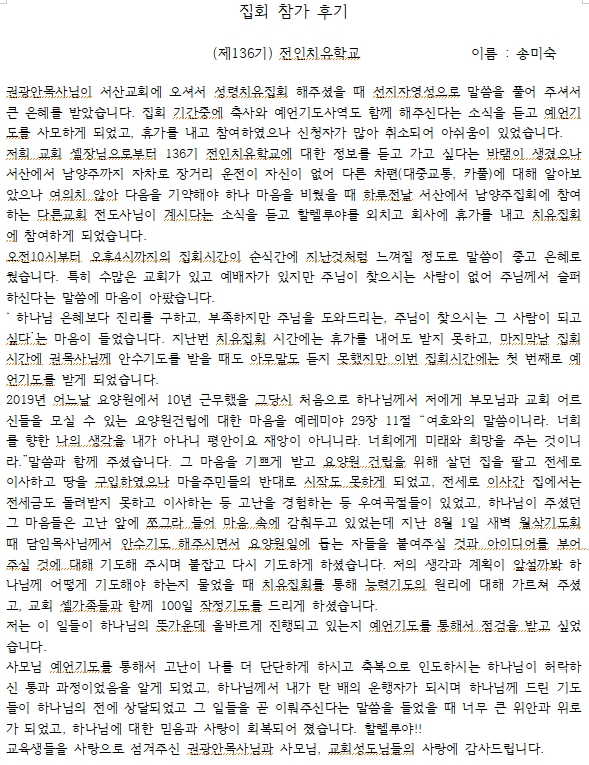 (제136기) 이곳을 덮으소서~내 안에 무너졌던 모든 소망 다 회복하리니~ 작성자약속믿고|작성시간25.10.01|조회수35 목록 댓글 1 글자크기 작게가 글자크기 크게가 다음검색 현재 게시글 추가 기능 열기 북마크 공유하기 신고 센터로 신고 댓글 댓글 1 댓글쓰기 답글쓰기 댓글 리스트 작성자약속믿고 작성자 본인 여부 작성자 | 작성시간 25.10.01 다시 시작됐습니다.다시 한번 부흥을 주소서!!!! 댓글 전체보기