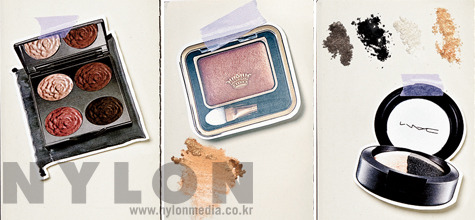 2009 폴 컬렉션 아이 글로스 “바싹 마른 가루가 아니라 윤기가 있어 촉촉하고 매혹적인 느낌이 살아 있는 텍스처가 매력적인 제품이에요. 눈꺼풀 위에 소량의 진줏빛 펄이나 골드와 같은 밝은 색조를 따로 또는 섞어 바르면 미세한 반짝임과 컬러감으로 부담스럽지 않은 세련미를, 레드-블랙이나 블랙 색상을 펄이나 골드를 바른 눈꺼풀 위에 겹쳐 바르면 지적인 분위기를, 이 상태에서 색을 조금 더 짙게 덧바르면 강렬한 광택으로 모든 이의 눈길을 사로잡을 수 있을 거예요. 손가락 끝을 이용해 어두운 색상을 눈꺼풀 전체에 펴 바르고 어플리케이터로 블렌딩하면 되는데, 펄이나 골드를 눈썹 뼈와 눈꺼풀 중앙에 가볍게 바르면 눈이 더욱 돋보일 거예요.”