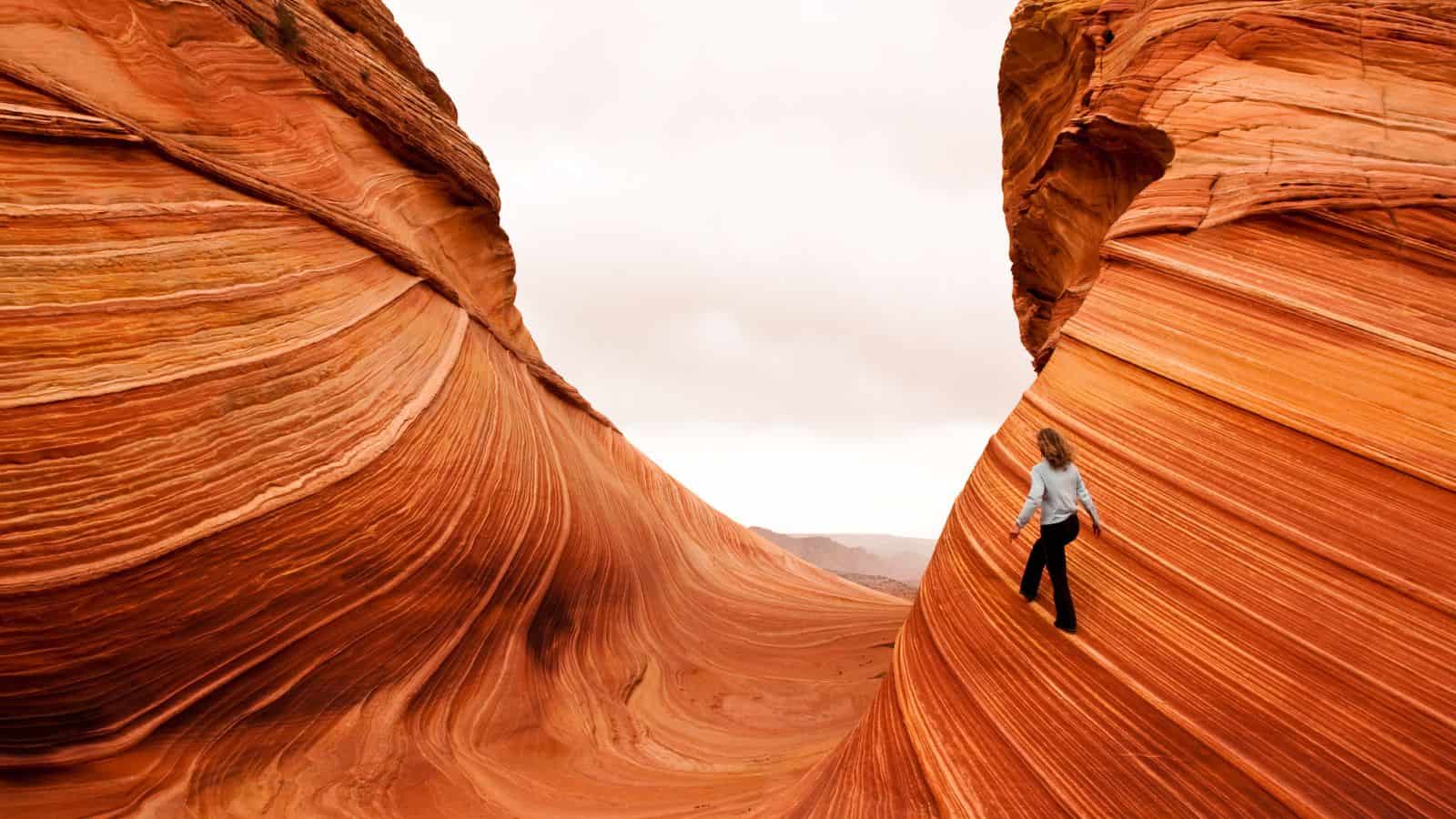 One of the reasons why The Wave is considered one of the most beautiful places to hike in the US is because of the way the light hits the rocks, creating a range of colors and textures. The reflections on the sandstone can change throughout the day, making for a unique experience every time you visit.