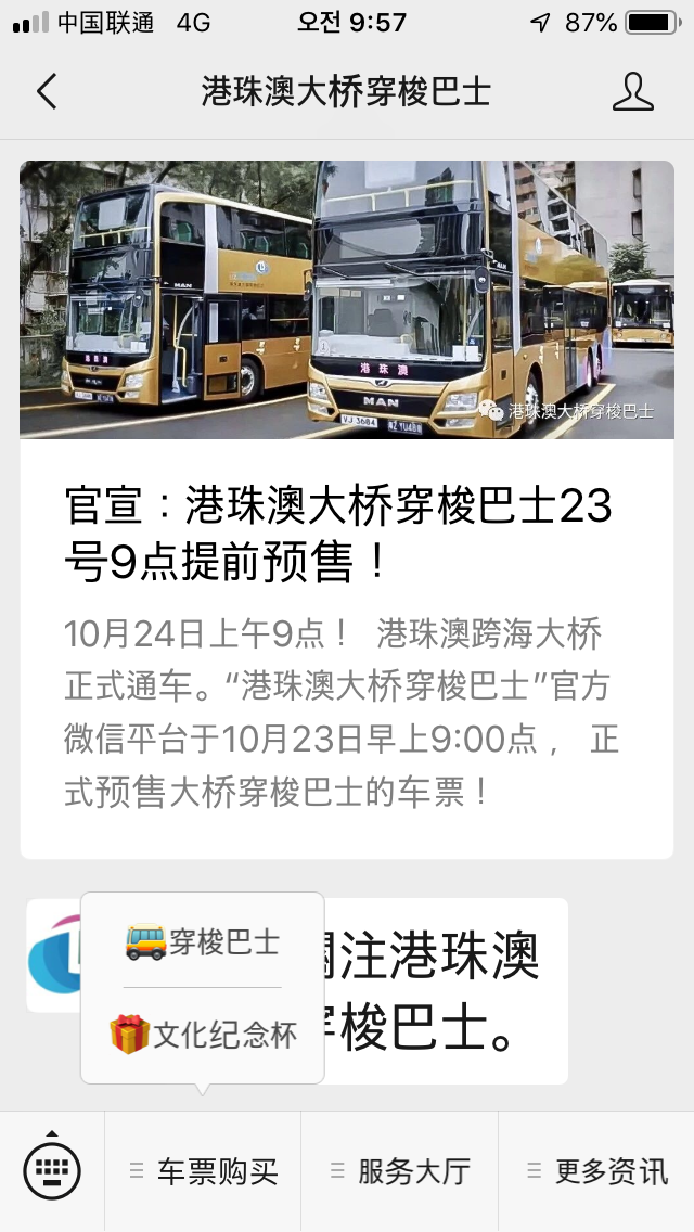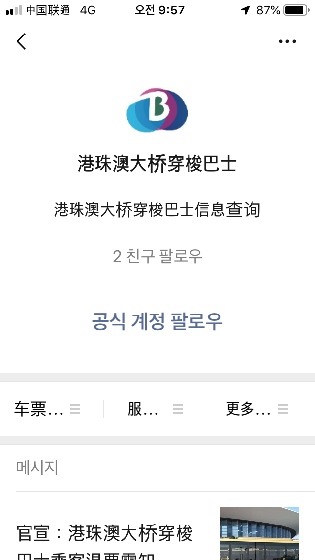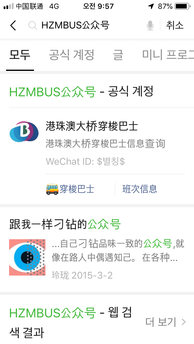 HZMBUS 혹은 港珠澳大橋穿梭巴士 를 입력하면