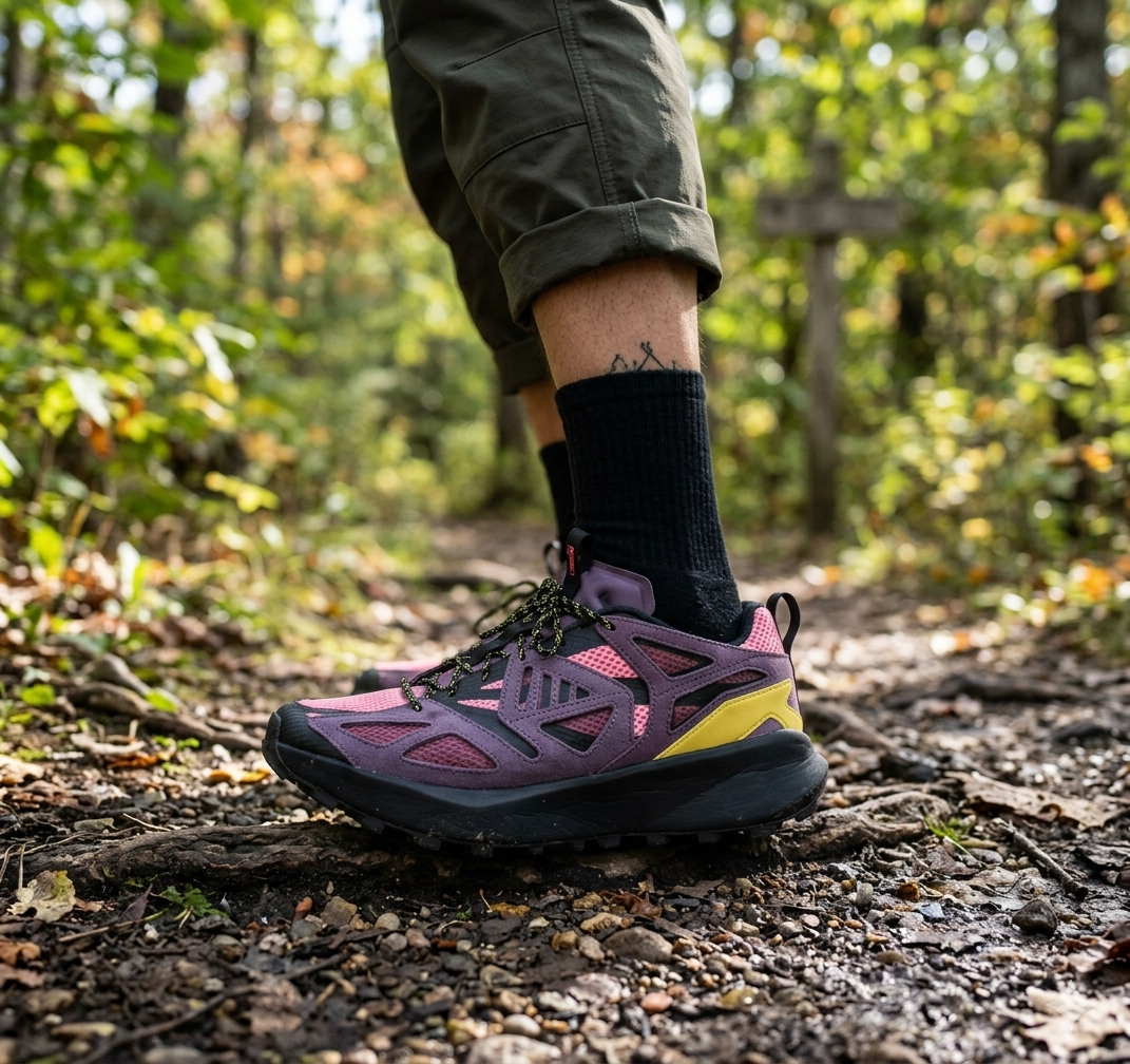 디자인: 전통적인 등산화의 레이어드 텍스타일과 가죽 어퍼를 사용해 견고한 느낌을 주면서도, 전체적인 실루엣은 도심에서 신기 좋은 세련된 '청키 스니커즈' 형태를 띠고 있습니다.