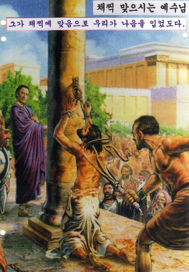 "그가 찔림은 우리의 허물을 인함이요. 그가 상함은 우리의 죄악을 인함이라. 그가 징계를 받으므로 우리가 평화를 누리고 그가 채찍에 맞음으로 우리가 나음을 입었도다.("사53:5)