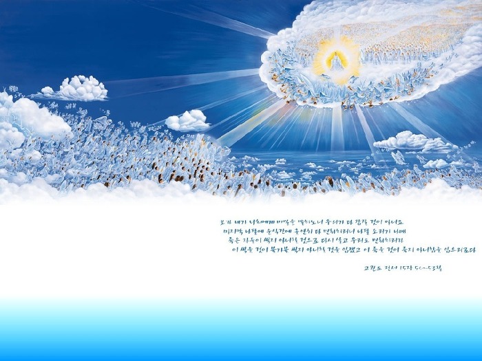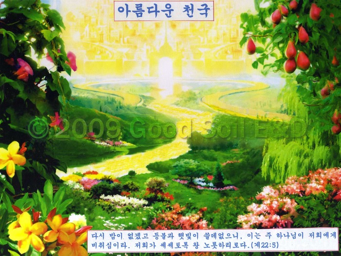 하나님께서는 사랑하는 자녀들을 위하여 수정같이 맑고 아름다운 천국을 예비하시고, 모든 영혼이 구원에 이르기를 원하시며 한 영혼이라도 더 새 예루살렘성에 들어오기를 고대하고 계십니다.
