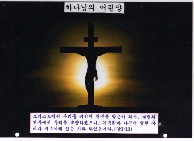 "하나님이 세상을 이 처럼 사랑하사 독생자를 주셨으니, 이는 저를 믿는 자마다 멸망치 않고 영생을 얻게 하려 하심이라."(요3:16)