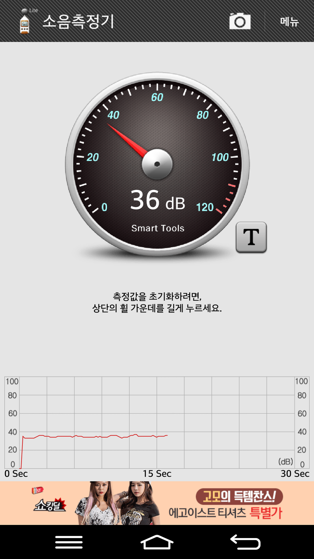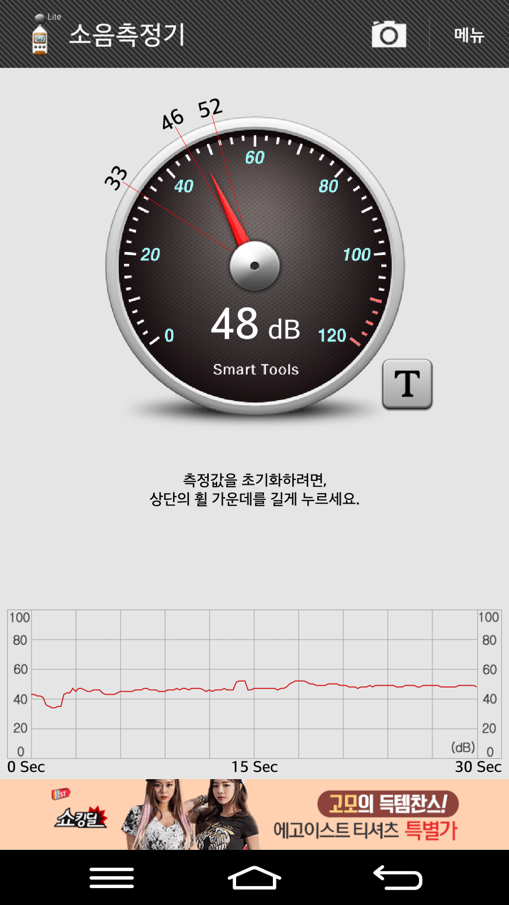 아래는 기기본체와 1미터 거리에서 측정한 소음값이고 1단에서 36dB, 2단 46dB, 3단 48dB 로 측정되었습니다.