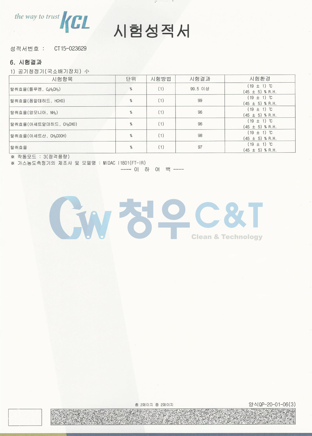 시험성적서에서 탈취효율이란것이 단순히 냄새만을 없애는 효율이 아닌 포괄적인 개념의 단어이더군요. 암모니아(염기성), 아세트 알데히드(중성), 초산(산성)을 대표 가스로 선정하여 시험한 수치로 공기 중에 존재하는 가스 제거 능력을 나타낸다고 하네요.