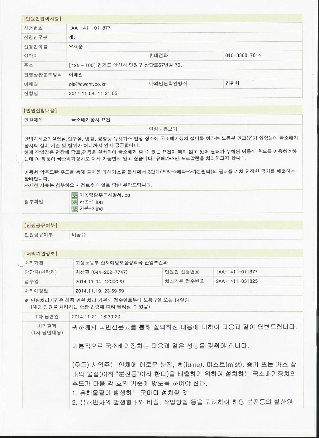 무엇보다 가장 중요한건 이걸 사용했을때 법적으로 국소배기장치로 인정을 해주냐겠죠?
