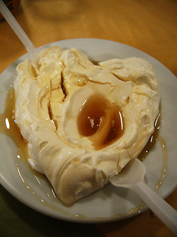 정확한 명칭은 모르지만, 순수하게 후식으로 크림 치즈에 꿀을 뿌려 먹습니다.