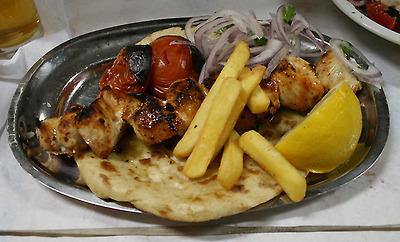 [위의 사진] 수블라키는 주재료만 달라서 모두 비슷비슷~ 소고기인듯~