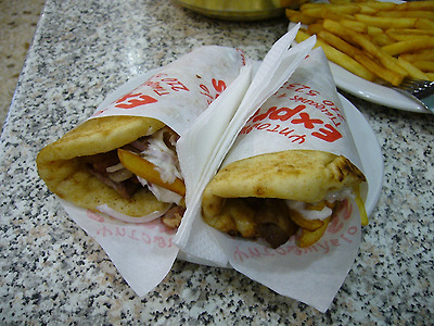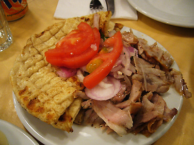 [위의 사진] 기로스는 터키의 케밥과 비슷한 음식으로