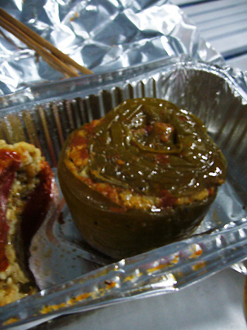 [위의 사진] 맛은 위와 똑같아요. 단지, 피망안에 속을 넣은 것 뿐. 역시 짜요. =_=