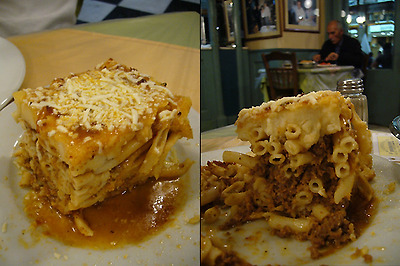 [위의 사진] 내용물의 대부분은 마카로니와 다진 고기. 그리고 치즈.
