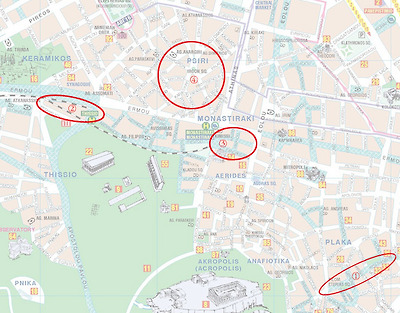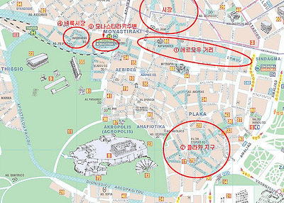 [위의 사진] 아테네의 쇼핑지역을 표시해 보았습니다. 순서대로 소개할게요~