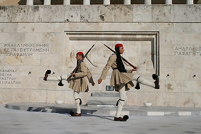 에브조네스(Evzones)라는 전통복장을 입은 의장병들이 귀여운 털방울이 달린 신발을 신고