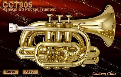 고급으로 눈을 돌리면 UMI Benge Colibri와 Kanstul CCT 905 같은 것은 저가형과 달리 일반 트럼펫과 동일한 크기의 벨을 가지고 있고 소리도 그런 반면 가격도 그정도 한다 (~$1200.00). 장난감이 아니다. 만일 연주용으로 포켓 트럼펫을 필요로 하는 것이라면 (ㅡ.ㅡ;;) 이런걸 사라. 포켓 트럼펫이 다 생긴게 비슷비슷해 보이지만 Benge의 경우 1번 슬라이드 안장이 영 아니다. 기타 품질 관리 등을 볼 때 둘 중에 하나라면 Kanstul이 좀 더 나은 선택일 것 같다.