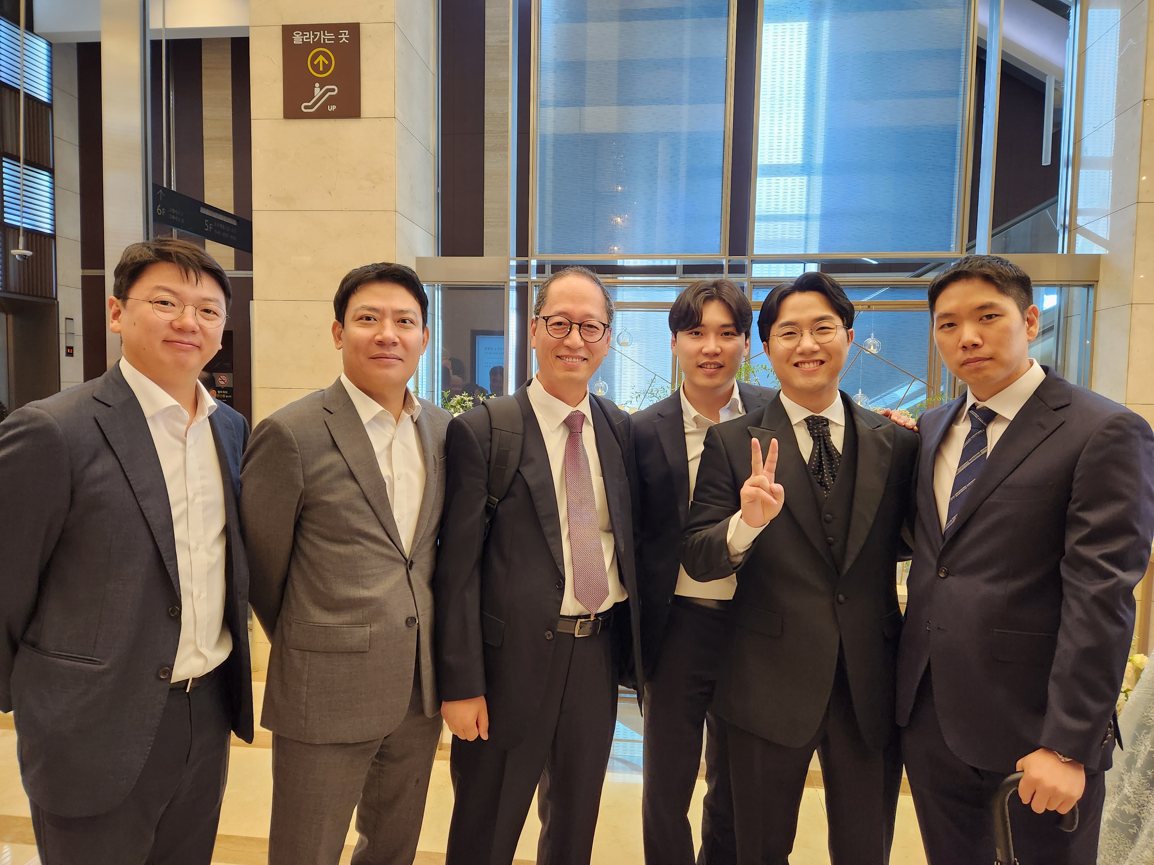 좌측부터 최민규 변호사, 이진용 변호사, 김원명 교수, 김현준 변호사, 안상영 변호사, 원형식 동문.