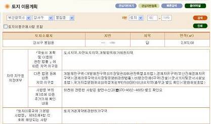 한국토지정보시스템을 통해 부산광역시 강서구 봉림동 XXX-XXXX 지번을 입력하니