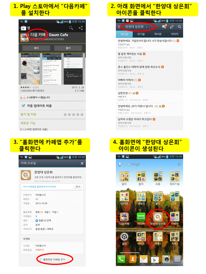 다들 스마트 폰은 가지고 있으니 아이콘 하나 클릭만으로 우리 카페에 방문할수 있는 방법을 알려드립니다
