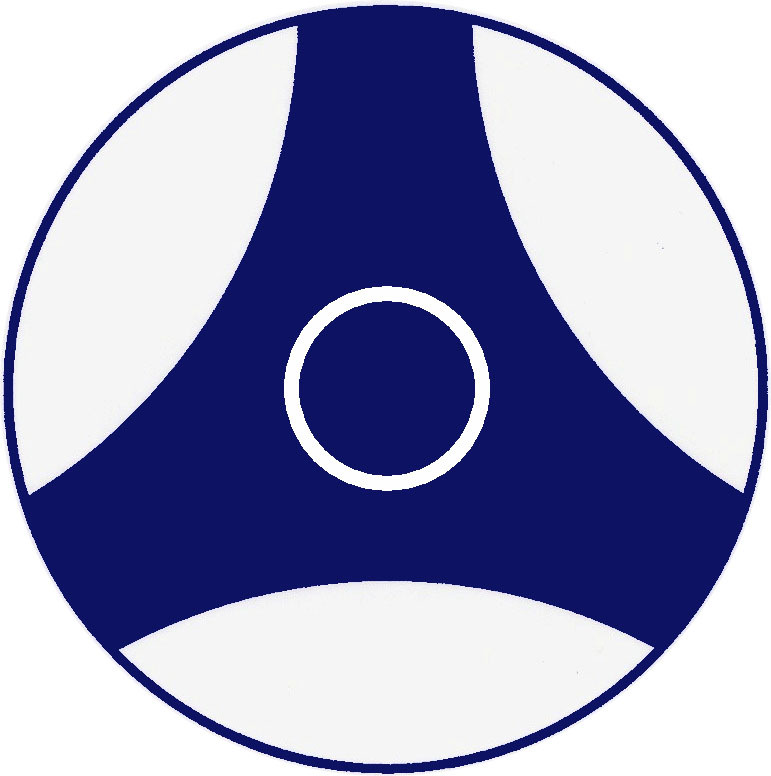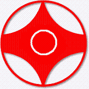 극진의 심볼 마크(관공-가라데型의 하나-마크로도 불리움). 가운데 원을 둘러싸고 있는 4개의 아치형의 선은 실로 드러나지 않은 원의 일부이다. 결국 부분적으로 가려진 원을 포함한 원은 6개(외곽,중심,4개의 아치형 원)이 된다. 6개의 원은 세계의 6대륙을 상징한다. 6대륙의 원이 극진이 추구하는 「세계우호의 가교」를 상징한다. | |
