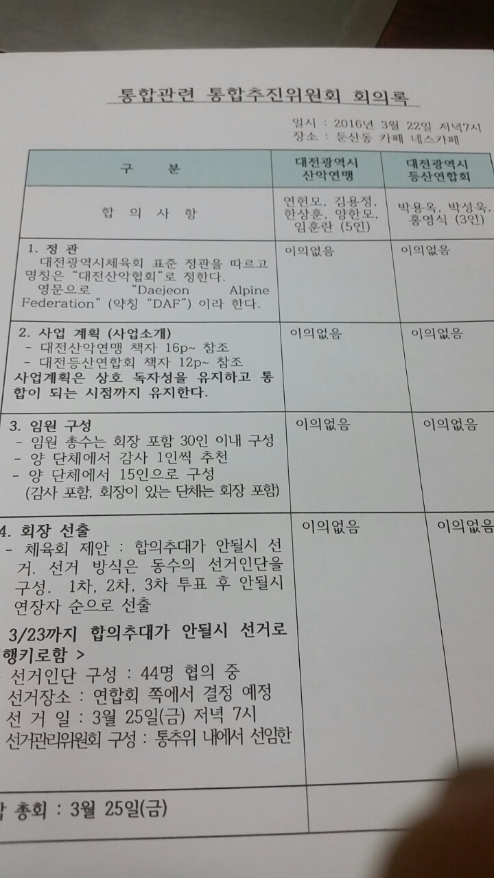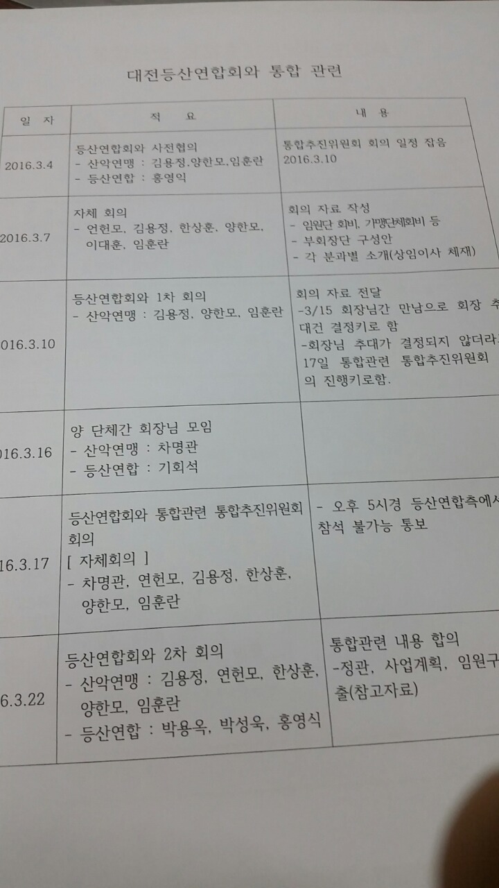 통합관련통합추진위원회회의록 작성자박석호|작성시간16.03.23|조회수27 목록 댓글 0 글자크기 작게가 글자크기 크게가 등산연합회와 대전산악연맹이 통페합함 다음검색 현재 게시글 추가 기능 열기 북마크 공유하기 신고 센터로 신고 댓글 댓글 0 댓글쓰기 답글쓰기 댓글 리스트