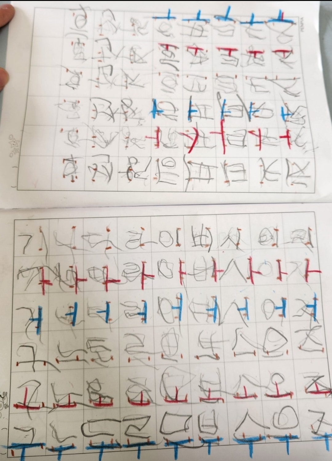 아이와 10개월동안 한글 가-하 거-허 고-호 구-후 그-흐 기-히 이렇게 읽고 쓰기를 해왔고
