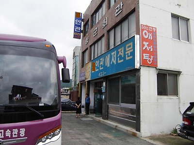 차를 적당히 주차시키고 식당에 왔는데.. 으잉!! 경기도에서 온 관광버스가 한대 버티고 있다 !!