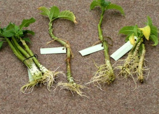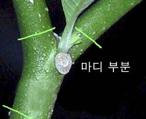 note : 물꽂이에서 줄기가 썩었다면 썩은 부분을 잘라내고 흙에 꺾꽂이를 하는 방법으로 바꾼다. | |