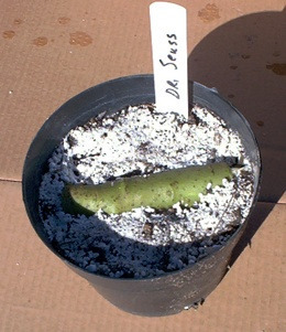 수집가들이 즐겨 사용하는 방법으로 길고 굵은 가지를 삽목 할 때의 방법이다. 자른 줄기를 마르고 거름기 없는 흙에 마디와 눈(싹이 나오는 부분)이 가능한 한 많은 쪽이 위로 가도록 가로로 눕혀 살짝 눌러준다. 반쯤 흙에 묻히도록.. 이렇게 하면 고정이 되어 줄기가 흙 위에서 굴러다니지 않을 뿐만 아니라 뿌리가 나는데도 도움이 된다. 줄기 밑에 흙에 싸인 돌기(물꽂이 할때 뿌리가 나온 반점)에서 뿌리가 나오고 눈(싹)과 마디(결절) 부분이 자라 새로운 나무가 된다. 만일 줄기가 가늘거나 껍질이 너무 부드러워 돌기가 잘 안보이면 새로 온 잎(싹)만 보이도록 하고 나머지 부분은 흙을 덮어 준다. 장소 : 반그늘 토양은 촉촉하게 유지하되 절대 과습 해서는 안된다. |