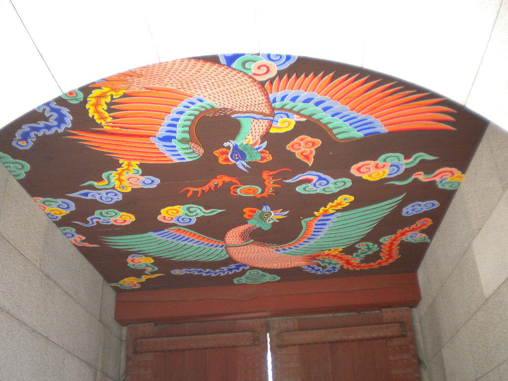 이곳 홍예틀 천정에는 봉황이 대신 들어있다.