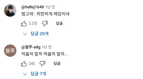 그건 그렇고 위 영상에 달린 인상적인 댓글들은 아래와 같다.