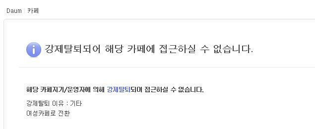 - 이전에는 분란성글과 행동에 대해서 남자든 여자든 성에 상관없이 기존의 규칙을 적용해서 강등이나 강퇴조치를 취해 왔었다. 그러나 현 운영자는 이를 바로 투표에 붙였고 제대로 된 논의과정 없이 일방적인 투표 진행 이후에 이 투표 결과를 적용해서 여성전용카페로 전환하기에 이른다.