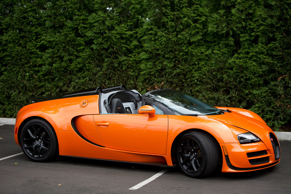 The Bugatti Veyron Grand Sport Vitesse is a version of the Bugatti Grand Sport that comes with a Super Sport (1,200-horsepower, W16-cylinder) engine. It goes 0 to 60 mph in 2.6 seconds, with a top speed of 233 mph. Price: $1.8 million (base).