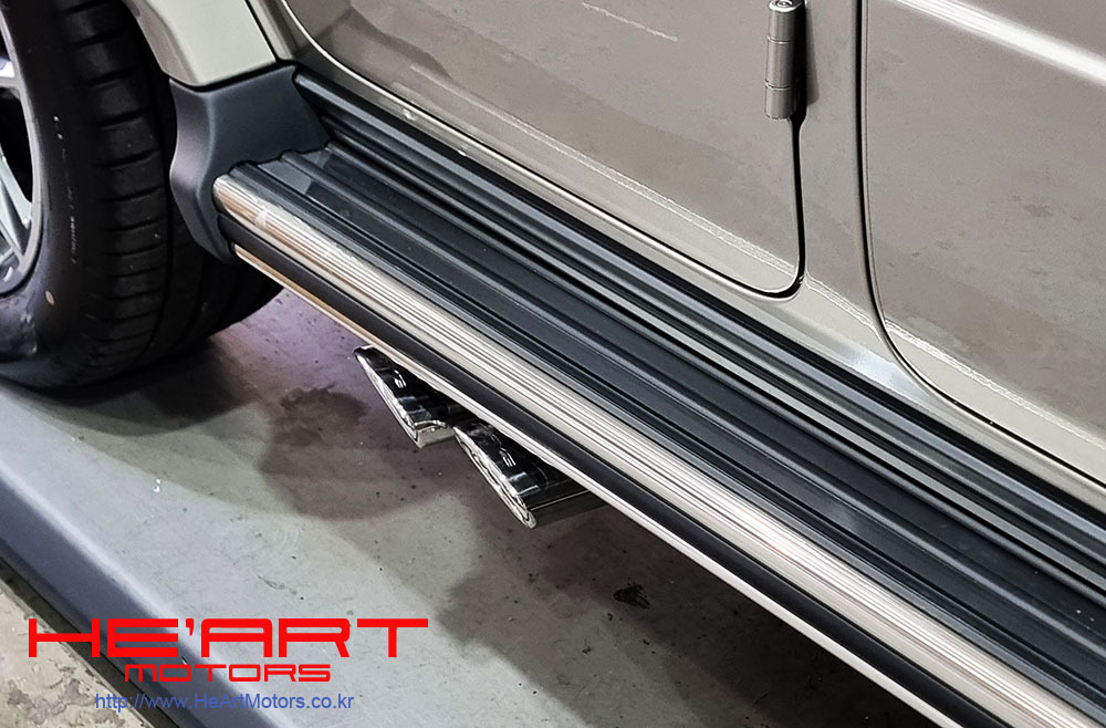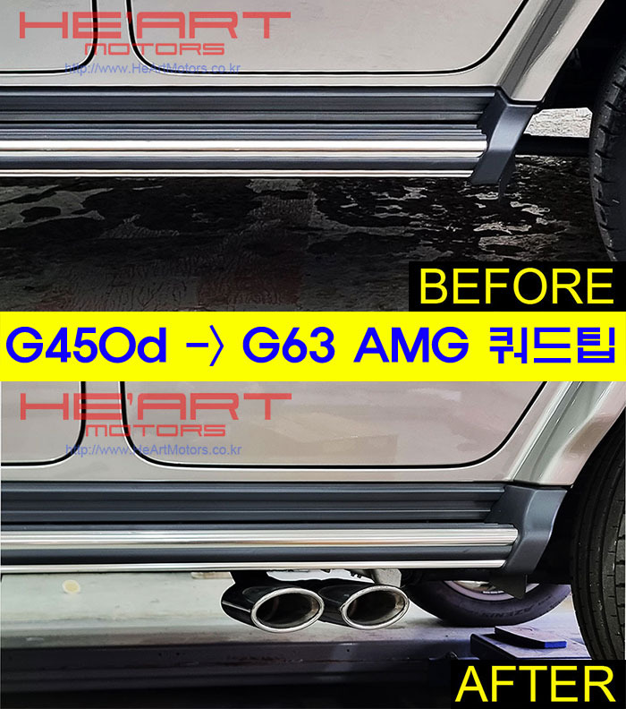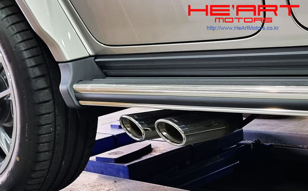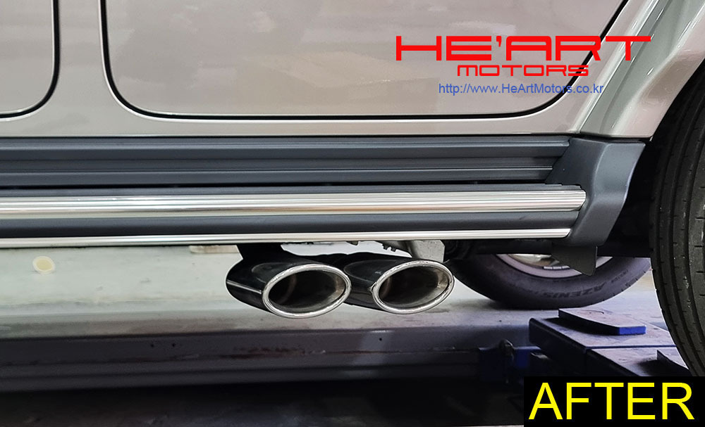 좌/우측 모두 G63 AMG 머플러팁으로 용접완료된 모습입니다.
