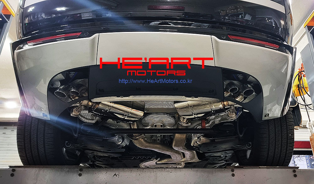 신형 레인지로버 배기라인에 딱 맞는 규격의 전용 가변 소음기를 적용합니다.