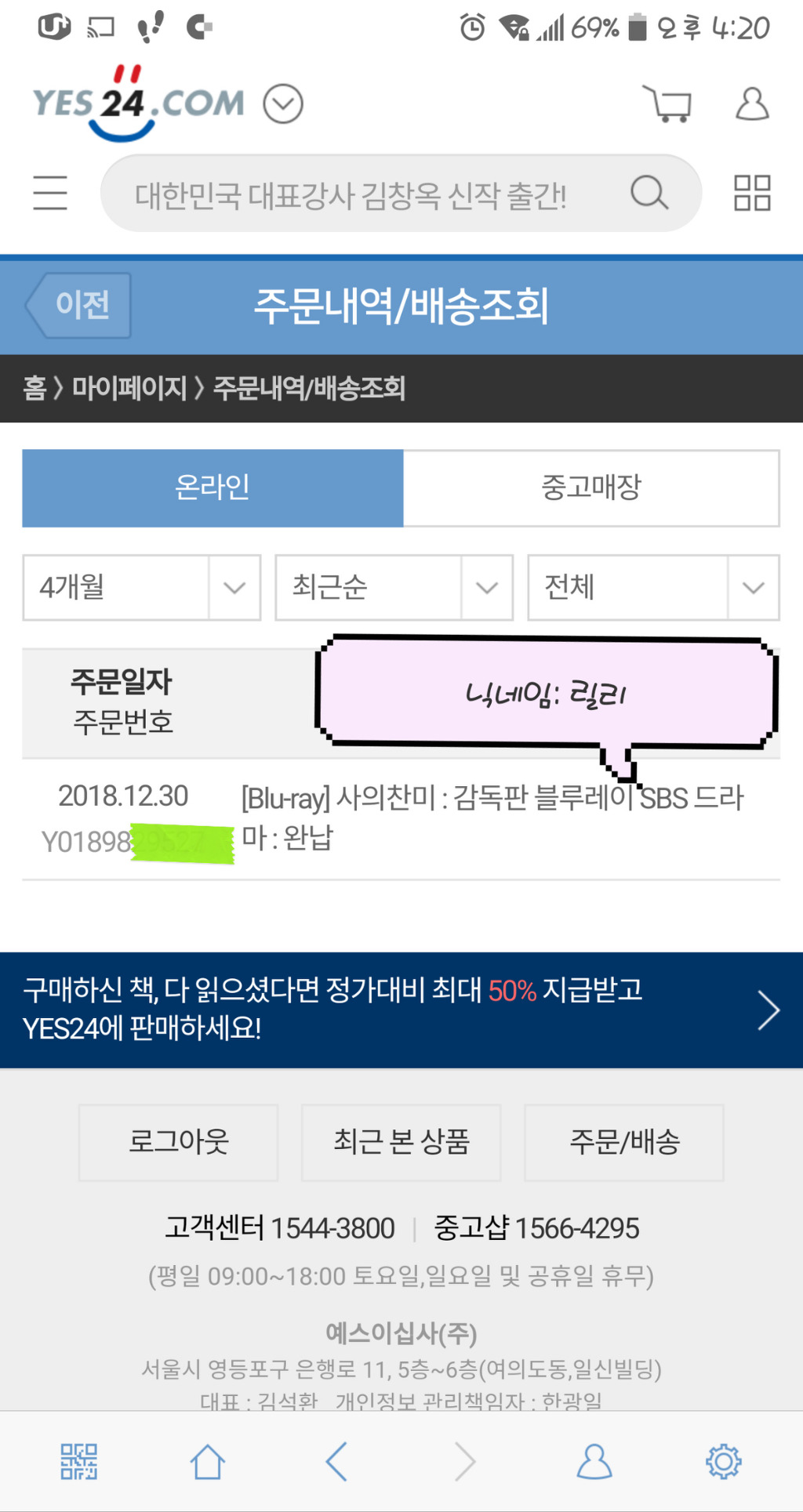사의찬미 DVD 작성자릴리|작성시간19.01.26|조회수731 목록 댓글 1 글자크기 작게가 글자크기 크게가 1.주문내역 캡쳐 2.주문번호 뒤4자리 반드시 가리기 3.캡쳐에 닉네임,작성하기(릴리) 4.비밀 댓글로 올리기 다음검색 현재 게시글 추가 기능 열기 북마크 공유하기 신고 센터로 신고 댓글 댓글 1 댓글쓰기 답글쓰기 댓글 리스트 작성자사찬카페관리스탭 | 작성시간 19.01.27 우수회원 등업 되셨습니다완료된 등업 신청글은 ‘ 등업완료’ 게시판으로 이동합니다 댓글 전체보기