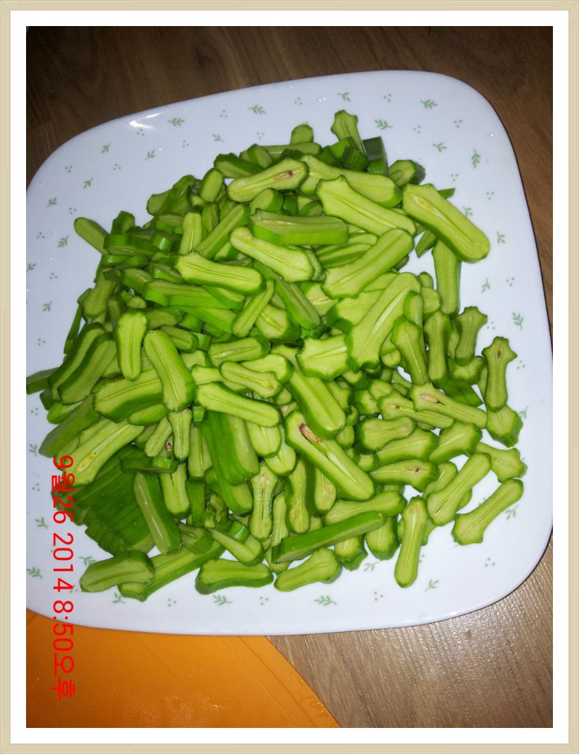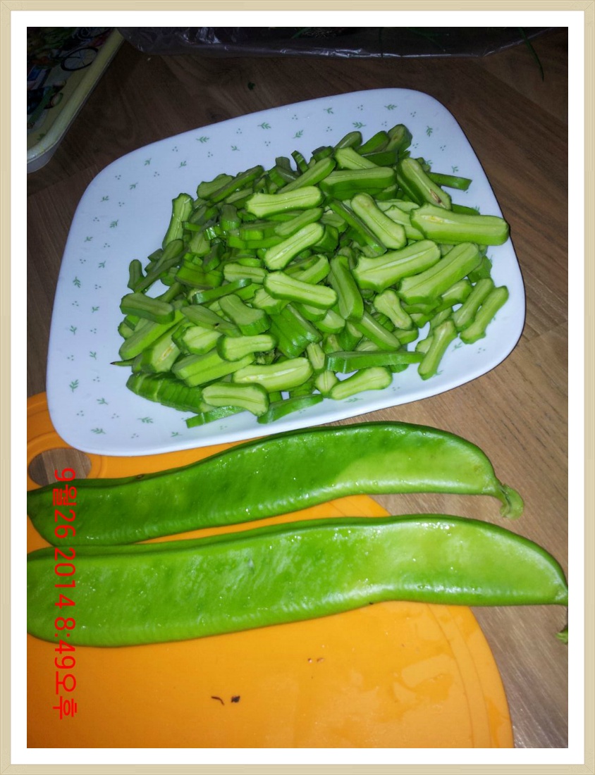 수확해온 작두콩을 이렇게 잘게 잘랐습니다...