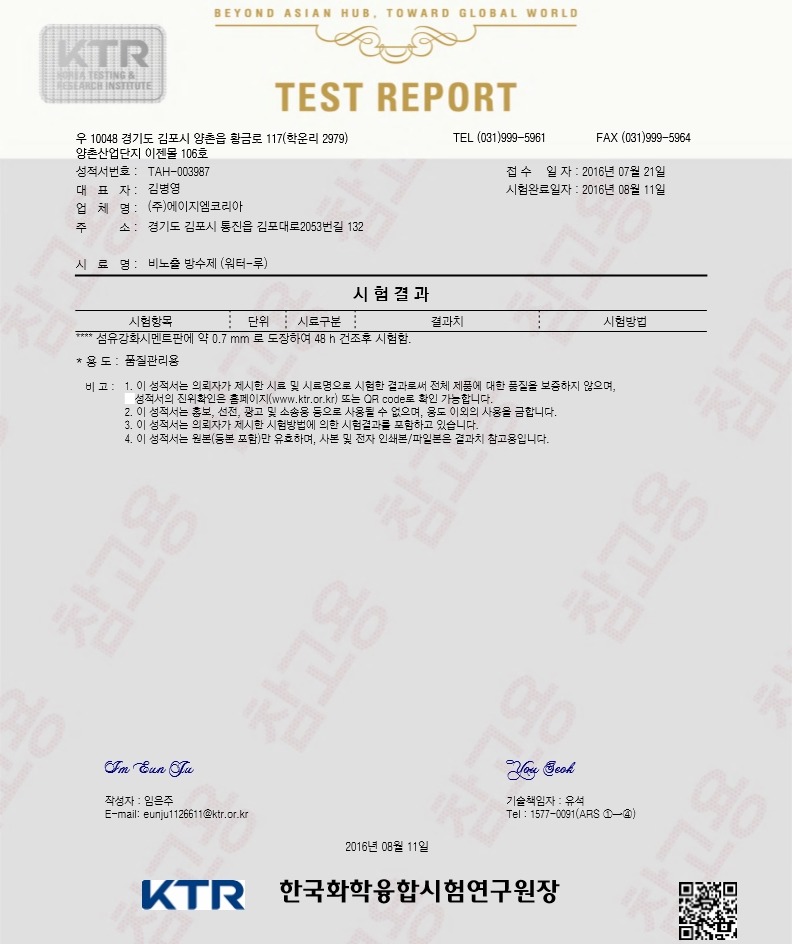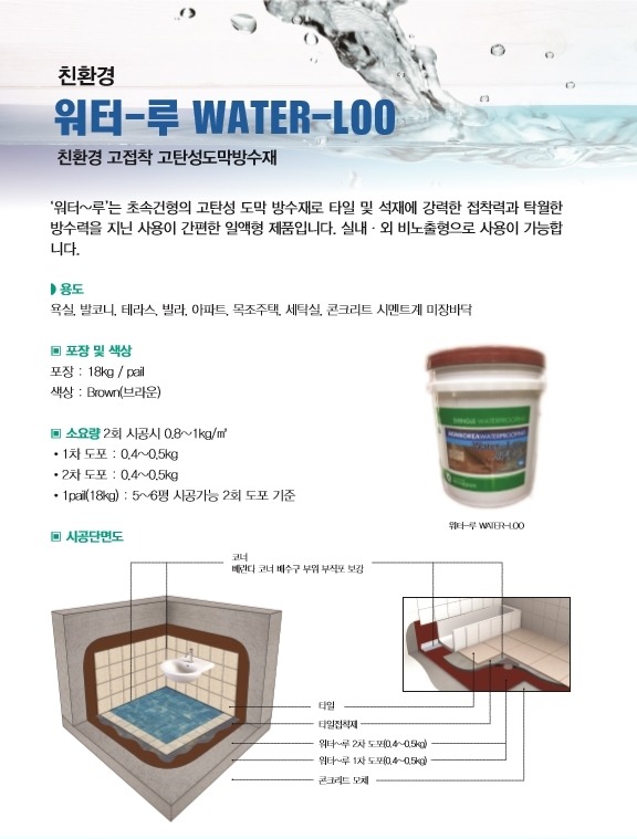 워터-루 도막 방수재 작성자허브우드|작성시간17.05.18|조회수98 목록 댓글 0 글자크기 작게가 글자크기 크게가 제품 사진시험성적서판매가격 : 워터루(120,000원), 방수 보강 테이프(16,000원)도포면적 : 16헤베(5~6평) 시공가능 / 2회도포기준제품규격 : 18kg/통 다음검색 현재 게시글 추가 기능 열기 북마크 공유하기 신고 센터로 신고 댓글 댓글 0 댓글쓰기 댓글 리스트