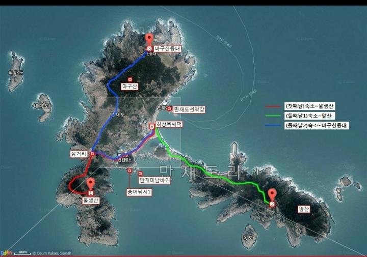 대리마을(1구)~샛개재~방공호~독실산~백년등대~신선봉~향리마을(2구)~섬등반도~대리마을(1구)/(5시간 30분)